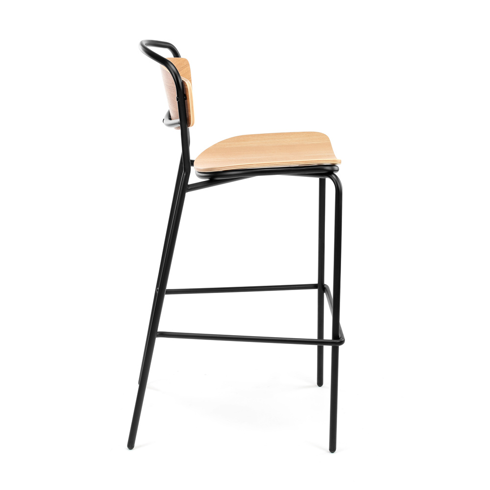 Visually light but structurally strong, the stackable Thru chair is offered with either a moulded plywood or upholstered seat and back.  Integrated stacking bumpers and custom moulded hardware covers reinforce the clean lines and geometry of this modern café chair.